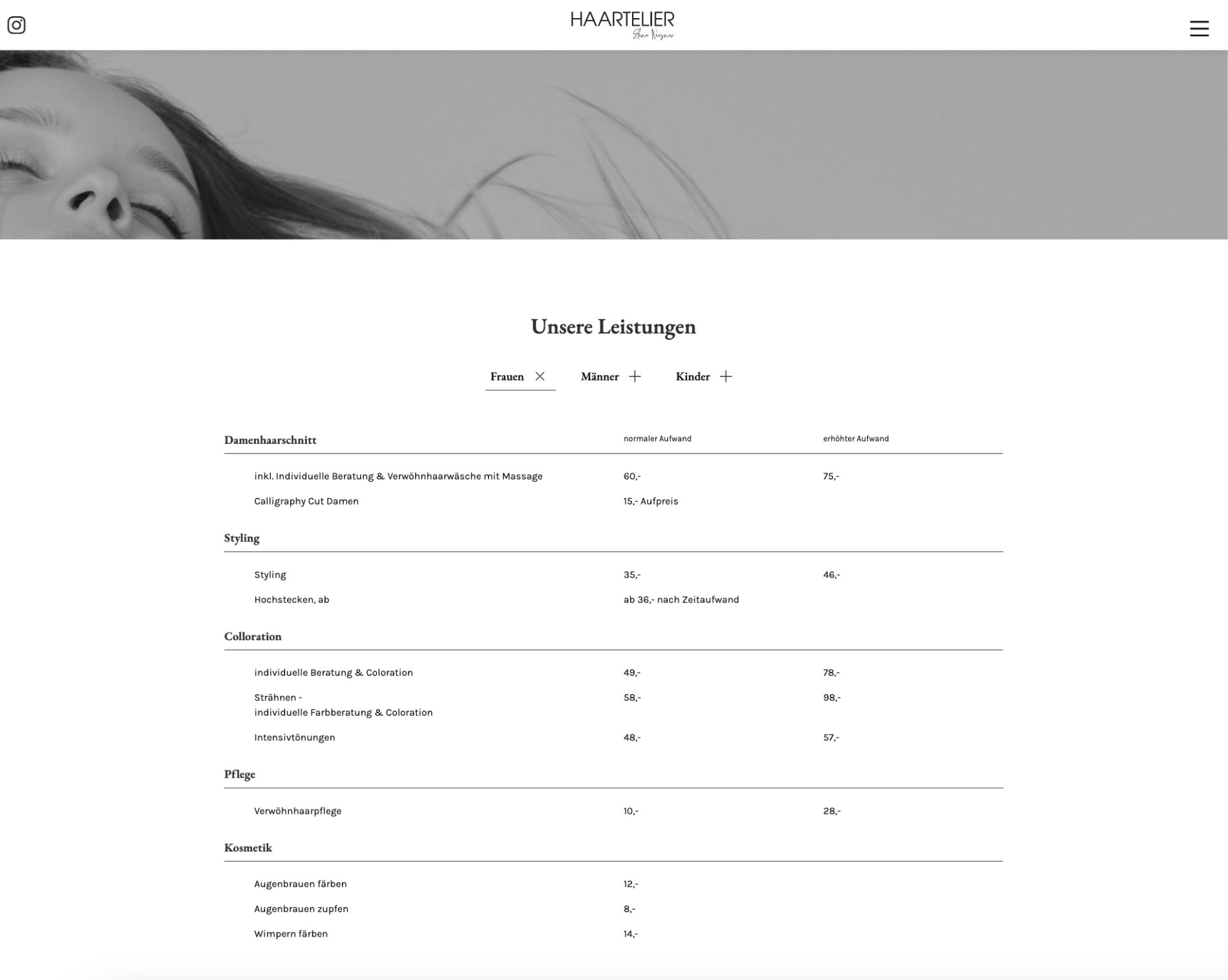 For HAARTELIER Elena Wiesner, a contemporary hair salon based in Nuremberg, I designed a responsive website that showcases their personal consultation approach and up-to-date styling expertise. The project focused on presenting key services and making information easily accessible for both new and returning clients. Clear structure and modern visuals help highlight the salon’s philosophy and commitment to customer care. Note: The current version of the website may have been updated by other teams after launch.